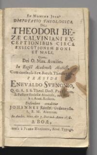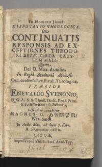 Theses de qvæstione, utrum Muschovitæ sint Christiani? Jussu s. r. m. Sveciæ etc. ad publicam disputationem in academia Ubsaliensi propositæ, a Iohanne Botvidi ... respondente m. Andrea Iohannis Prytz. Prid. cal. April. in auditorio magno hora 6. mat