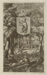 Insigne Magni Ducatus Finlandiæ Fritt Upphov Aveelen, Johannes van den, 1655-1727 Utgivningsår 1712 Ingår i samling Suecia antiqua et hodierna (Erik Dahlbergh) Kategori BildGravyrerBilder