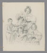 Familjegrupp med mor, två döttrar och en son Fritt Upphov Röhl, Maria, 1801-1875 Utgivningsår 1832 Kategori BildBilderBlyertsteckningarPorträttGrupporträtt