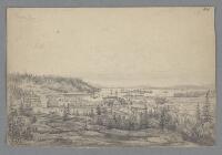 Vy över Kramfors och ångermanälven Fritt Upphov Hallbeck, Carl Svante, 1826-1897 Utgivningsår 1845 Kategori BildBilderStadsvyerBlyertsteckningar