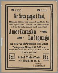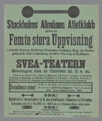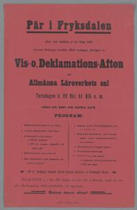 Stor musikal.-deklamatorisk soaré med dans med biträde af Arbetare-föreningens hela sångkör sam 10 framstående musici., Arbetar-föreningens fest-sal. Söndagen d. 2 oktober kl. 7 e. m.