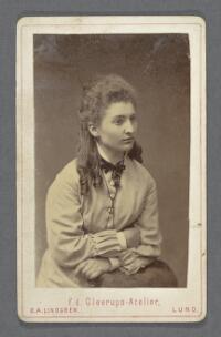 Porträtt på Anna Ahlander Fritt Upphov Lindgren, Berndt August, 1852-1904 Utgivningsår Ingen uppgift Kategori BildPorträttFotografierVisitkortsfotografierBilder
