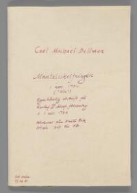 Mantalsskrifningen, med flera Bellman-skrifter Fritt Upphov Bellman, Carl Michael, 1740-1795 Utgivningsår 1775 Kategori Handskrifter