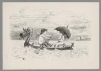 Två putti i en roddbåt Fritt Upphov Janzon, Nils, 1850-1926 Utgivningsår 1888 Kategori BildBilderBläck- och tuschteckningarHumoristiska bilder