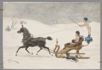 Två putti på slädfärd Fritt Upphov Janzon, Nils, 1850-1926 Utgivningsår 1880 Kategori BildBilderHumoristiska bilderAkvareller