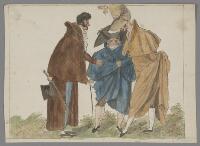 Karikatyrteckning av två herrar och en dam i samtal Fritt Upphov Mörner, Hjalmar, 1794-1837 Utgivningsår 1810 Kategori BildBilderBläck- och tuschteckningarAkvarellerHumoristiska bilderKarikatyrer