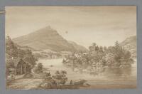 Landskapsbild av ön Schwanau belägen i sjön Lauerz i kantonen Schwyz i centrala Schweiz Fritt Upphov Gyldenstolpe, Nils, 1799-1864 Utgivningsår 1820 Kategori BildBilderLandskapsbilderLaveringar