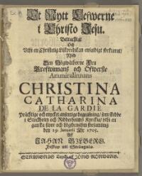 Et nytt lefwerne i Christo Jesu. Betrachtat och vthi en christelig lijkpredikan enfaldigt förklarat, wid ... öfwerste ammiralinnans Christina Catharina De la Gardie prächtige och mycket ansenlige begrafning, som skedde i Stockholm och