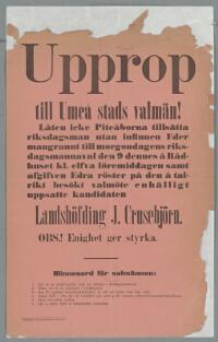 Kamrat! Besök Brunne ordenshus ; söndagen d. 13 okt. kl. 6 em., Där förekommer bl. a.: föredrag av ombudsman Sven Nordvall. Deklamation. Musik. Teater. (Under falsk flagg). Musik av J. Sjögrens danskapell