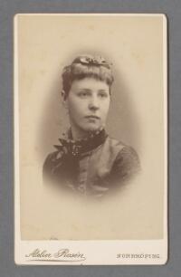 Porträtt föreställande Siri Thunström Fritt Upphov Rosén, Carl, 1855-1908 Utgivningsår 1880 Kategori BildBilderPorträttFotografier (påsiktsbilder)Visitkortsfotografier