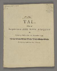 Tal om den våda och fara för Svea rikes frihet och sjelfständighet, hvarifrån det, igenom konung Gustaf den III blifvit frälst och räddat; hållit i anledning af den emellan Sverige och Ryssland uppå Verelä slätt den 14. augusti 1790, slutna freden i Åbo kongl. academiens öfre- lärosal den 9 november 1790. Af Pehr Adrian Gadd ... Åbo, tryckt i Frenckellska boktryckeriet.