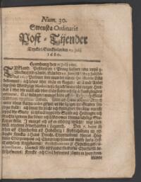 POSTTIDNINGAR 1680-07-27 Fritt Upphov Ingen uppgift Utgivningsår 1680 Ingår i samling Post och inrikes tidningar 1645-1705Posttidningar Kategori Tidningsnummer