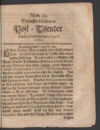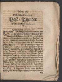 POSTTIDNINGAR 1680-08-17 Fritt Upphov Ingen uppgift Utgivningsår 1680 Ingår i samling Post och inrikes tidningar 1645-1705Posttidningar Kategori Tidningsnummer