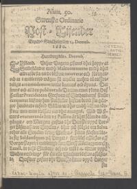POSTTIDNINGAR 1680-12-14 Fritt Upphov Ingen uppgift Utgivningsår 1680 Ingår i samling Post och inrikes tidningar 1645-1705Posttidningar Kategori Tidningsnummer