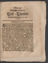POSTTIDNINGAR 1680-11-23 Fritt Upphov Ingen uppgift Utgivningsår 1680 Ingår i samling Post och inrikes tidningar 1645-1705Posttidningar Kategori Tidningsnummer