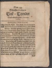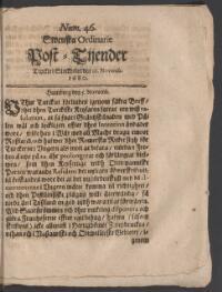 POSTTIDNINGAR 1680-11-09 Fritt Upphov Ingen uppgift Utgivningsår 1680 Ingår i samling Post och inrikes tidningar 1645-1705Posttidningar Kategori Tidningsnummer