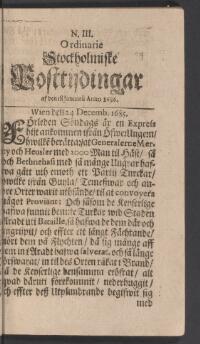 POSTTIDNINGAR 1680-12-28 Fritt Upphov Ingen uppgift Utgivningsår 1680 Ingår i samling Post och inrikes tidningar 1645-1705Posttidningar Kategori Tidningsnummer