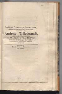 B. M. Viri. Juvenis. Reverandi, atqè doctissimi, d. Andreæ VVallenii. Westmann. In. Ecclesiâ. Svecanâ. Dorpati. Livonorum. Qvondam. Pastoris. vigilantissimi. XIV. Aprilis. Ann. Mdclxxx. in. Domino. piè. defuncti. Ipso. Solenni. Exeqviarum. Die. qvi. erat. Monimentum. hoc. dicatum. ac. in. solatium. superstitum. Aboa. Dorpatum. d. XII. Junii, transmissum.