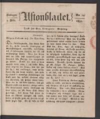 AFTONBLADET 1831-02-19 Fritt Upphov Ingen uppgift Utgivningsår 1831 Ingår i samling AftonbladetAftonbladet