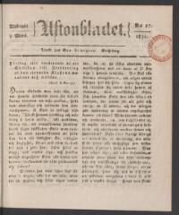 AFTONBLADET 1831-03-09 Fritt Upphov Ingen uppgift Utgivningsår 1831 Ingår i samling AftonbladetAftonbladet