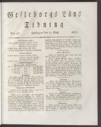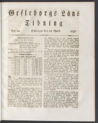 GEFLEBORGS LÄNS TIDNING 1837-03-22 Fritt Upphov Ingen uppgift Utgivningsår 1837 Ingår i samling Gefleborgs läns tidning (1836) Kategori Tidningsnummer