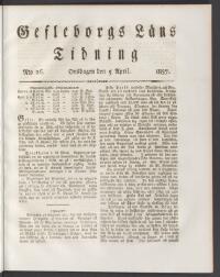 GEFLEBORGS LÄNS TIDNING 1837-04-01 Fritt Upphov Ingen uppgift Utgivningsår 1837 Ingår i samling Gefleborgs läns tidning (1836) Kategori Tidningsnummer