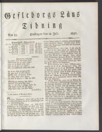 GEFLEBORGS LÄNS TIDNING 1837-07-12 Fritt Upphov Ingen uppgift Utgivningsår 1837 Ingår i samling Gefleborgs läns tidning (1836) Kategori Tidningsnummer