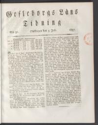 GEFLEBORGS LÄNS TIDNING 1837-07-05 Fritt Upphov Ingen uppgift Utgivningsår 1837 Ingår i samling Gefleborgs läns tidning (1836) Kategori Tidningsnummer