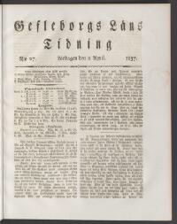 GEFLEBORGS LÄNS TIDNING 1837-04-05 Fritt Upphov Ingen uppgift Utgivningsår 1837 Ingår i samling Gefleborgs läns tidning (1836) Kategori Tidningsnummer