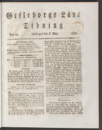 GEFLEBORGS LÄNS TIDNING 1837-05-06 Fritt Upphov Ingen uppgift Utgivningsår 1837 Ingår i samling Gefleborgs läns tidning (1836) Kategori Tidningsnummer