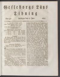 GEFLEBORGS LÄNS TIDNING 1837-06-07 Fritt Upphov Ingen uppgift Utgivningsår 1837 Ingår i samling Gefleborgs läns tidning (1836) Kategori Tidningsnummer