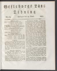 GEFLEBORGS LÄNS TIDNING 1837-03-25 Fritt Upphov Ingen uppgift Utgivningsår 1837 Ingår i samling Gefleborgs läns tidning (1836) Kategori Tidningsnummer