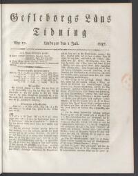 GEFLEBORGS LÄNS TIDNING 1837-07-01 Fritt Upphov Ingen uppgift Utgivningsår 1837 Ingår i samling Gefleborgs läns tidning (1836) Kategori Tidningsnummer