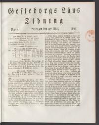 GEFLEBORGS LÄNS TIDNING 1837-05-27 Fritt Upphov Ingen uppgift Utgivningsår 1837 Ingår i samling Gefleborgs läns tidning (1836) Kategori Tidningsnummer