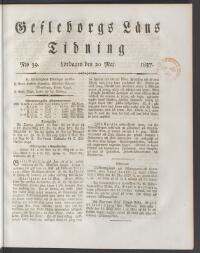 GEFLEBORGS LÄNS TIDNING 1837-05-20 Fritt Upphov Ingen uppgift Utgivningsår 1837 Ingår i samling Gefleborgs läns tidning (1836) Kategori Tidningsnummer