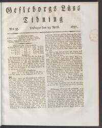 GEFLEBORGS LÄNS TIDNING 1837-04-29 Fritt Upphov Ingen uppgift Utgivningsår 1837 Ingår i samling Gefleborgs läns tidning (1836) Kategori Tidningsnummer