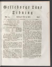 GEFLEBORGS LÄNS TIDNING 1837-07-19 Fritt Upphov Ingen uppgift Utgivningsår 1837 Ingår i samling Gefleborgs läns tidning (1836) Kategori Tidningsnummer