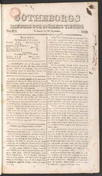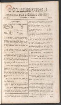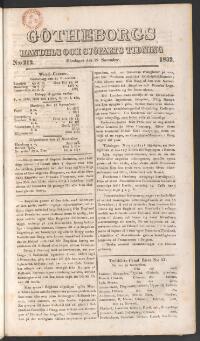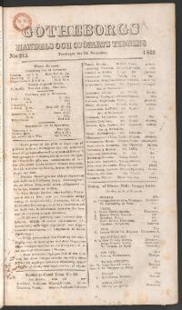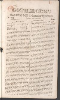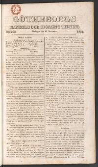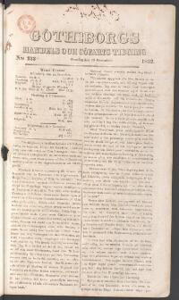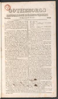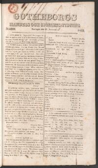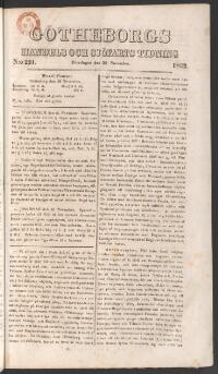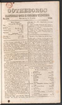 GÖTEBORGS HANDELS- OCH SJÖFARTSTIDNING 1832-11-22 Fritt Upphov Ingen uppgift Utgivningsår 1832 Ingår i samling Göteborgs handels- och sjöfartstidning (1832) Kategori Tidningsnummer