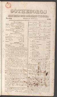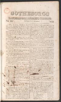 GÖTEBORGS HANDELS- OCH SJÖFARTSTIDNING 1832-11-09 Fritt Upphov Ingen uppgift Utgivningsår 1832 Ingår i samling Göteborgs handels- och sjöfartstidning (1832) Kategori Tidningsnummer