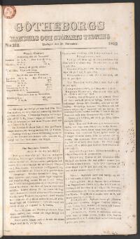 GÖTEBORGS HANDELS- OCH SJÖFARTSTIDNING 1832-11-20 Fritt Upphov Ingen uppgift Utgivningsår 1832 Ingår i samling Göteborgs handels- och sjöfartstidning (1832) Kategori Tidningsnummer