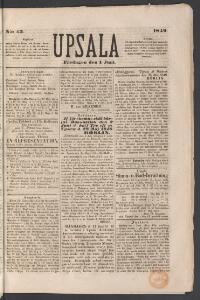 UPSALA 1849-06-08 Fritt Upphov Ingen uppgift Utgivningsår 1849 Ingår i samling Upsala Kategori Tidningsnummer
