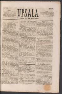 UPSALA 1846-11-20 Fritt Upphov Ingen uppgift Utgivningsår 1846 Ingår i samling Upsala Kategori Tidningsnummer