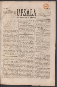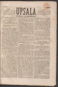 UPSALA 1846-10-20 Fritt Upphov Ingen uppgift Utgivningsår 1846 Ingår i samling Upsala Kategori Tidningsnummer