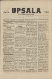 UPSALA 1854-03-28 Fritt Upphov Ingen uppgift Utgivningsår 1854 Ingår i samling Upsala Kategori Tidningsnummer