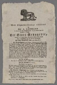 [Cirkus - samling av affischer] - 271 Fritt Upphov Ingen uppgift Utgivningsår 1833 Ingår i samling [Cirkus - samling av affischer] Kategori Affischer