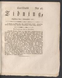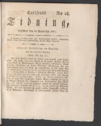 CARLSTADS TIDNING 1807-11-07 Fritt Upphov Ingen uppgift Utgivningsår 1807 Ingår i samling Carlstads tidning Kategori Tidningsnummer
