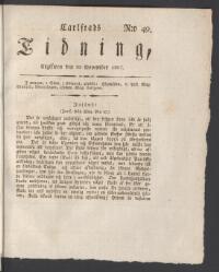 CARLSTADS TIDNING 1807-11-28 Fritt Upphov Ingen uppgift Utgivningsår 1807 Ingår i samling Carlstads tidning Kategori Tidningsnummer