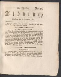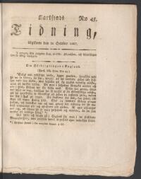 CARLSTADS TIDNING 1807-10-31 Fritt Upphov Ingen uppgift Utgivningsår 1807 Ingår i samling Carlstads tidning Kategori Tidningsnummer