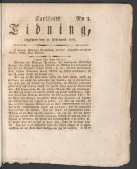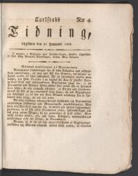 CARLSTADS TIDNING 1808-01-16 Fritt Upphov Ingen uppgift Utgivningsår 1808 Ingår i samling Carlstads tidning Kategori Tidningsnummer