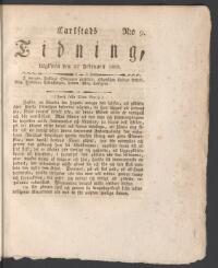 CARLSTADS TIDNING 1808-02-27 Fritt Upphov Ingen uppgift Utgivningsår 1808 Ingår i samling Carlstads tidning Kategori Tidningsnummer